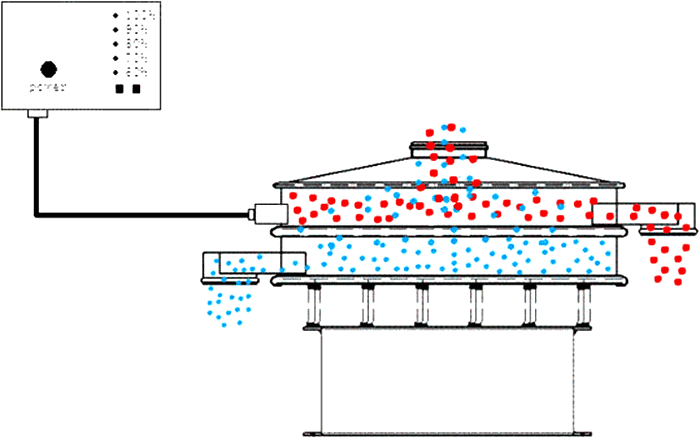 超聲波振動(dòng)篩是在傳統(tǒng)的振動(dòng)篩基礎(chǔ)上安裝了超聲波系統(tǒng),將電源產(chǎn)生的高頻電通過換能器轉(zhuǎn)換成高頻縱向振蕩波,這些振蕩波傳到共振器上使共振器上產(chǎn)生共振,然后由共振器將振動(dòng)均勻傳輸至篩面。使篩網(wǎng)上的氧化鎂做低頻三次元振動(dòng)的同時(shí)進(jìn)行再通過篩面上不同尺寸大小的網(wǎng)孔分級(jí)過網(wǎng)。