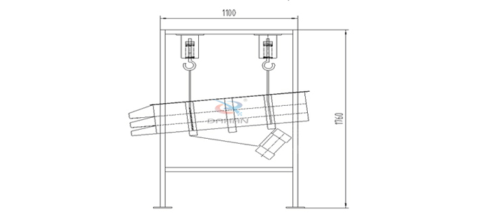 整個設(shè)備由篩箱、網(wǎng)架、篩網(wǎng)、2臺臥式振動篩電機、減震彈簧、進出料口、上蓋組成,除此之外還有高度可按需求定制的支架通過四個吊鉤把整個設(shè)備吊掛起來使其處于懸空狀態(tài)。